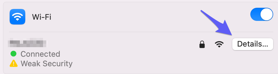 2. Select the network you wish to configure your DNS and click Details.