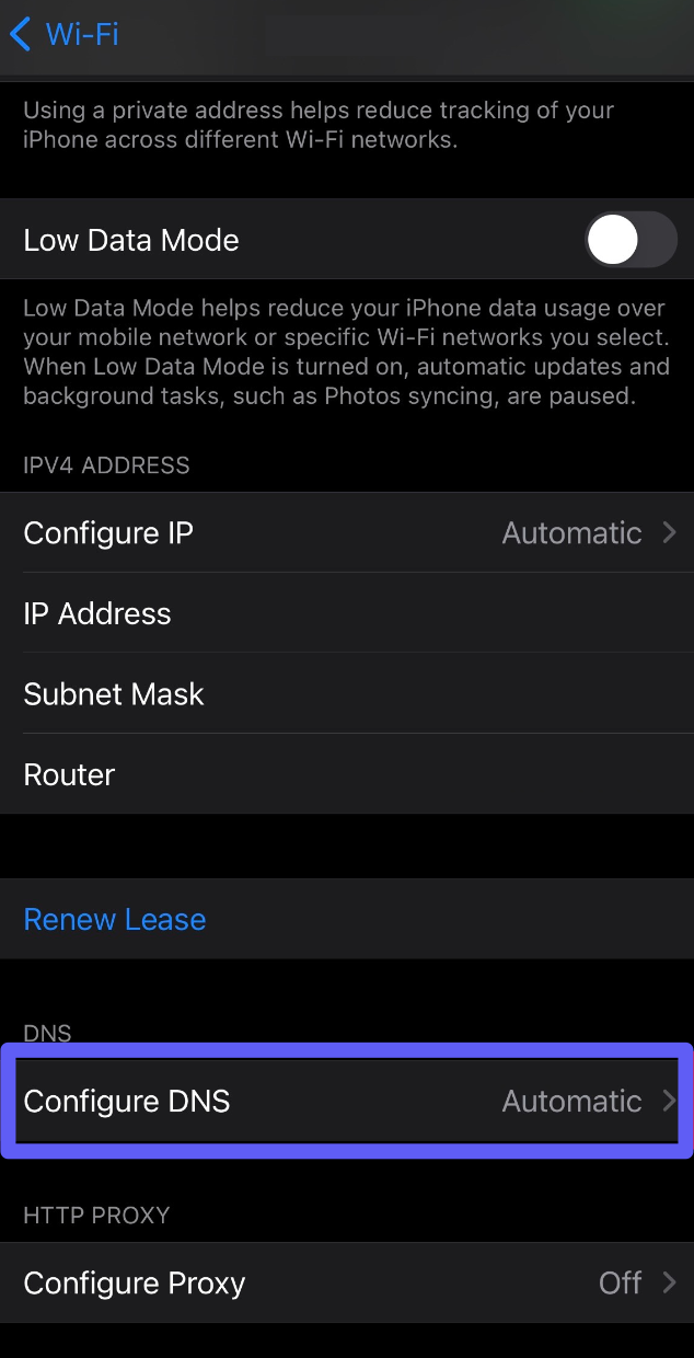 - In the new window, scroll down and select Configure DNS.