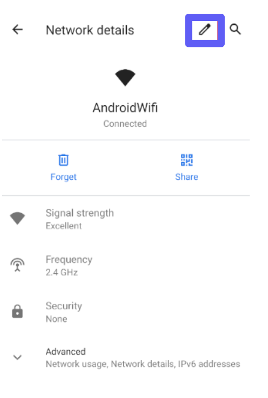 - Open the Settings app on your device, and select Network & Internet. Go to Wi-Fi and click on the wheel icon next to the network you are connected to.