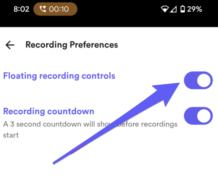 Yes! On the Android app, you can. Just open Settings and toggle off Floating recording controls.