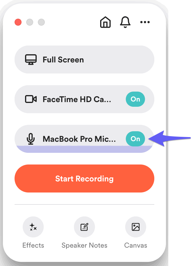 - Make sure your Internal audio is enabled based on the Loom recorder you are using.