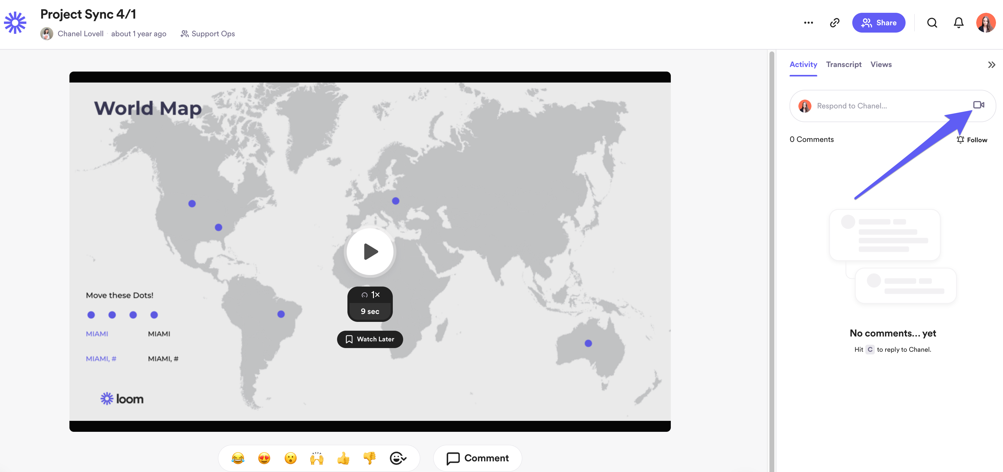 - Record a comment to respond to a loom with a loom. Your loom comment will be listed below the video with all the other comments.